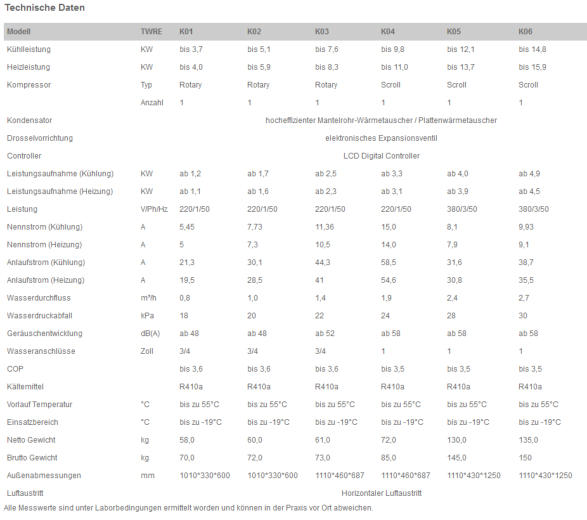 -Preiswerte Luft-/Wasserwärmepumpen in Ausführung Monoblock-Heiz- und Kühlfunktion-Maximale Vorlauftemp. 55 Grad celsius-Arbeitsweise bis -19 Grad celsius-inklusive Steuerung-Abtauung einstellbar-Diverse Schutzschaltungen: Hochdruckschutz, Niederdruckschutz, Phasenfolgeschutz,…-Kältemittel R410A-alle Preise inkl. gesetzlicher MwSt.-Rabatte für Gewerbetreibende möglich